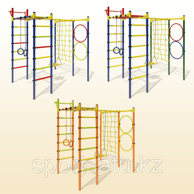 Комплектация: турник, кольца гимнастические, качели (цепь), канатный лаз Масса комплекса: 53,5 кг Возможные цвета: Размер упаковки: 1 место 2,21 х 0,29 х 0,90 м 2 место 0,67 х 0,68 х 0,30 м
